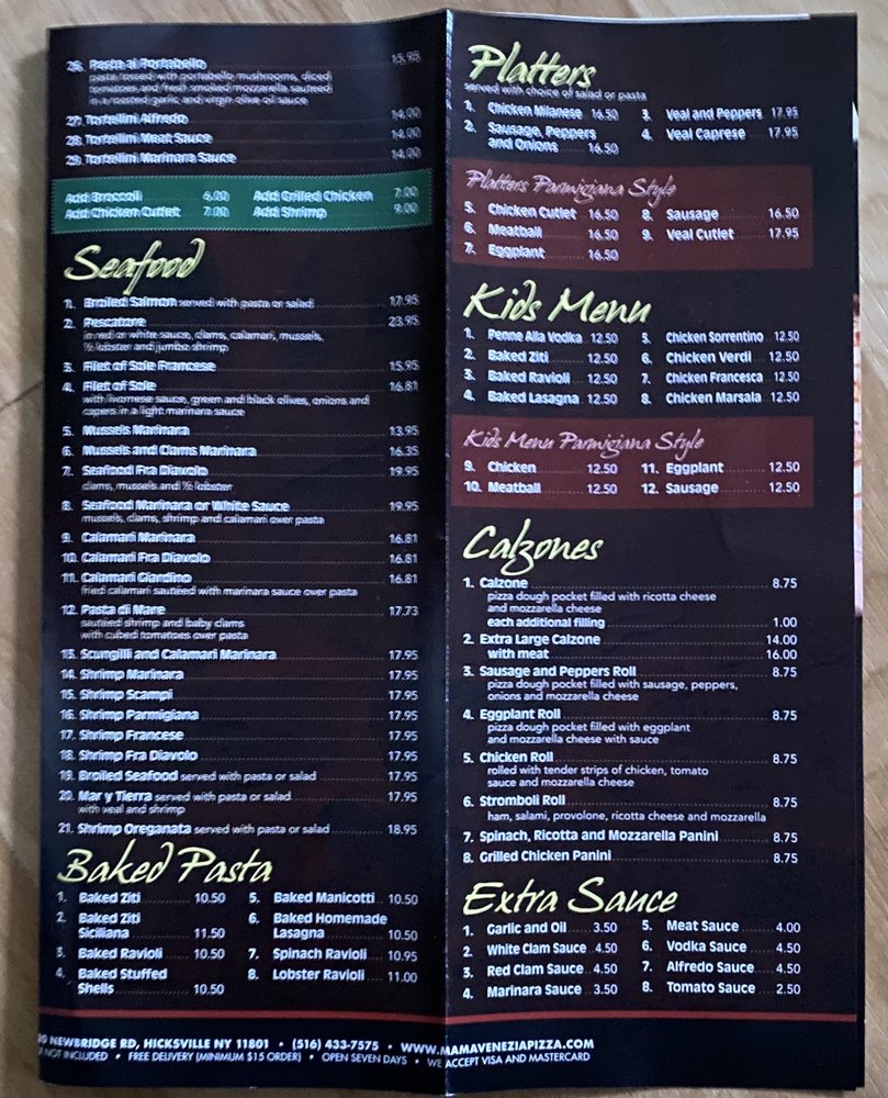 Welcome to Mama Venezia Pizza, where pizza perfection meets Long Island charm. Located in Hicksville, NY, this casual yet classy establishment offers an array of mouthwatering pizzas, pasta dishes, and more. Known for their excellent delivery service, Mama Venezia ensures your food arrives fresh and timely.